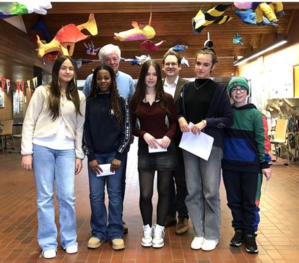 Am 26.1.26 wurden die Siegerinnen unter den EBS-Schülerinnen, die am Friedensplakatwettbewerb von Lions international teilgenommen haben, ausgezeichnet. Der Friedensplakatwettbewerb von Lions Clubs International ist ein internationaler Wettbewerb, der seit 1988 Schüler im Alter von 11 bis 13 Jahren herausfordert, ihre Vorstellungen vom Frieden kreativ darzustellen. Junge Menschen können so ihre Gefühle ausdrücken und andere Menschen an ihren Wünschen, Träumen und Ideen teilhaben lassen. Jährlich nehmen 600.000 Kinder aus 70 Ländern am Wettbewerb teil, selbstverständlich auch aus Deutschland.